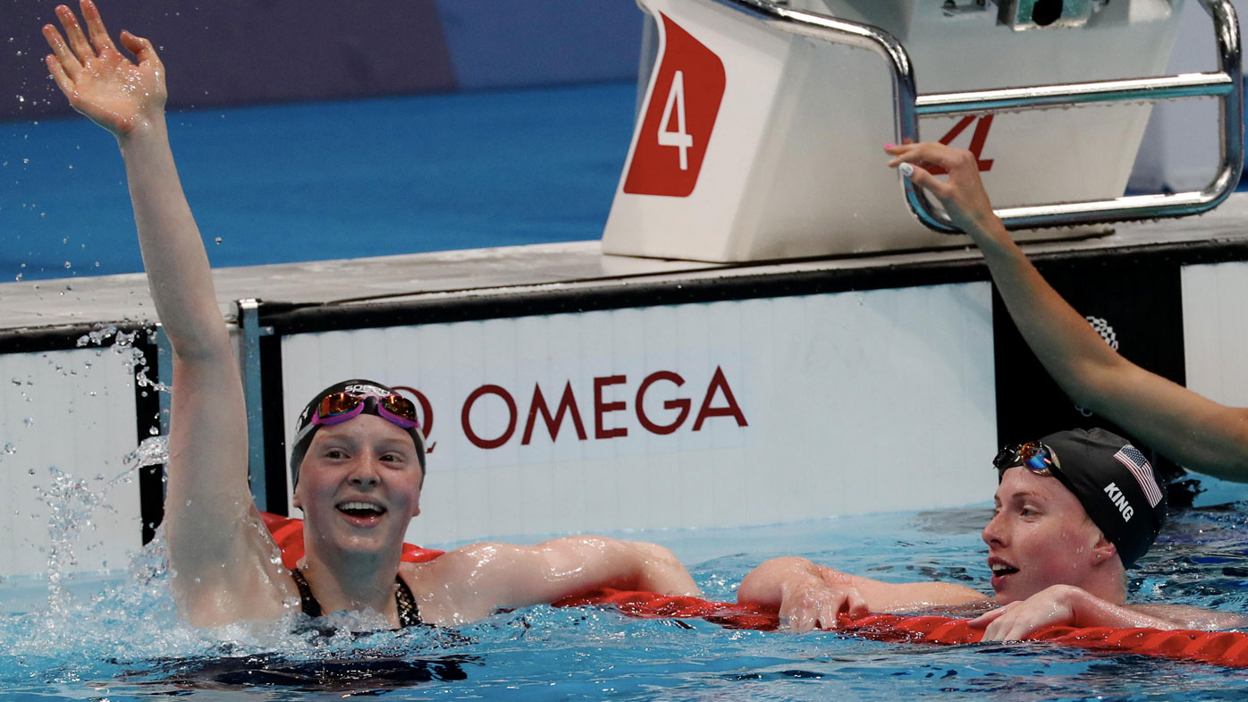 Usa's lydia jacoby celebrates after winning the.